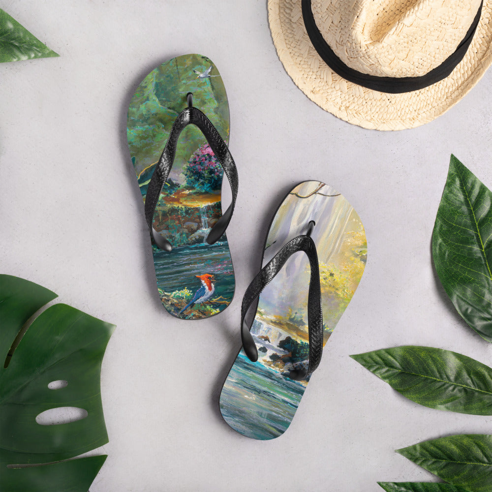 Red Crested Cardinal at the Falls - Flip-Flops